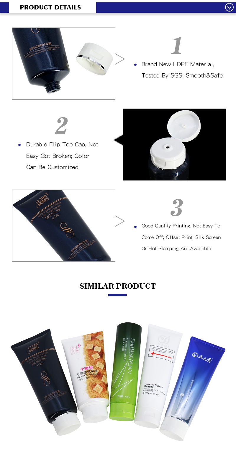 3. This is a large capacity tube , we can use it for body scrub , body butter cream or other like hair conditional ,hair mask. Our material is tested by SGS ,which is safe for use .
